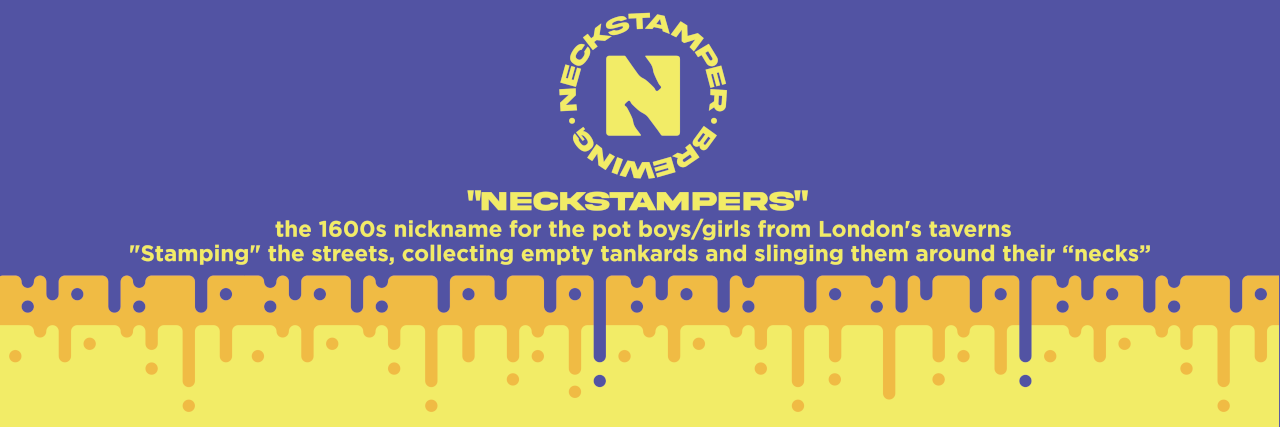 The name โNeckstamperโ draws inspiration from Londonโs rich brewing heritage. In the 1700s, a neck-stamper was the slang term for a pot boy at an alehouse โ the person tasked with collecting empty bottles and tankards from private homes, clinking around the streets with the empties strung around his neck. In many ways, it was the original takeaway beer. By reviving this piece of history, Neckstamper Brewing pays tribute to Londonโs long-standing love affair with great beer and the people who keep its traditions alive.